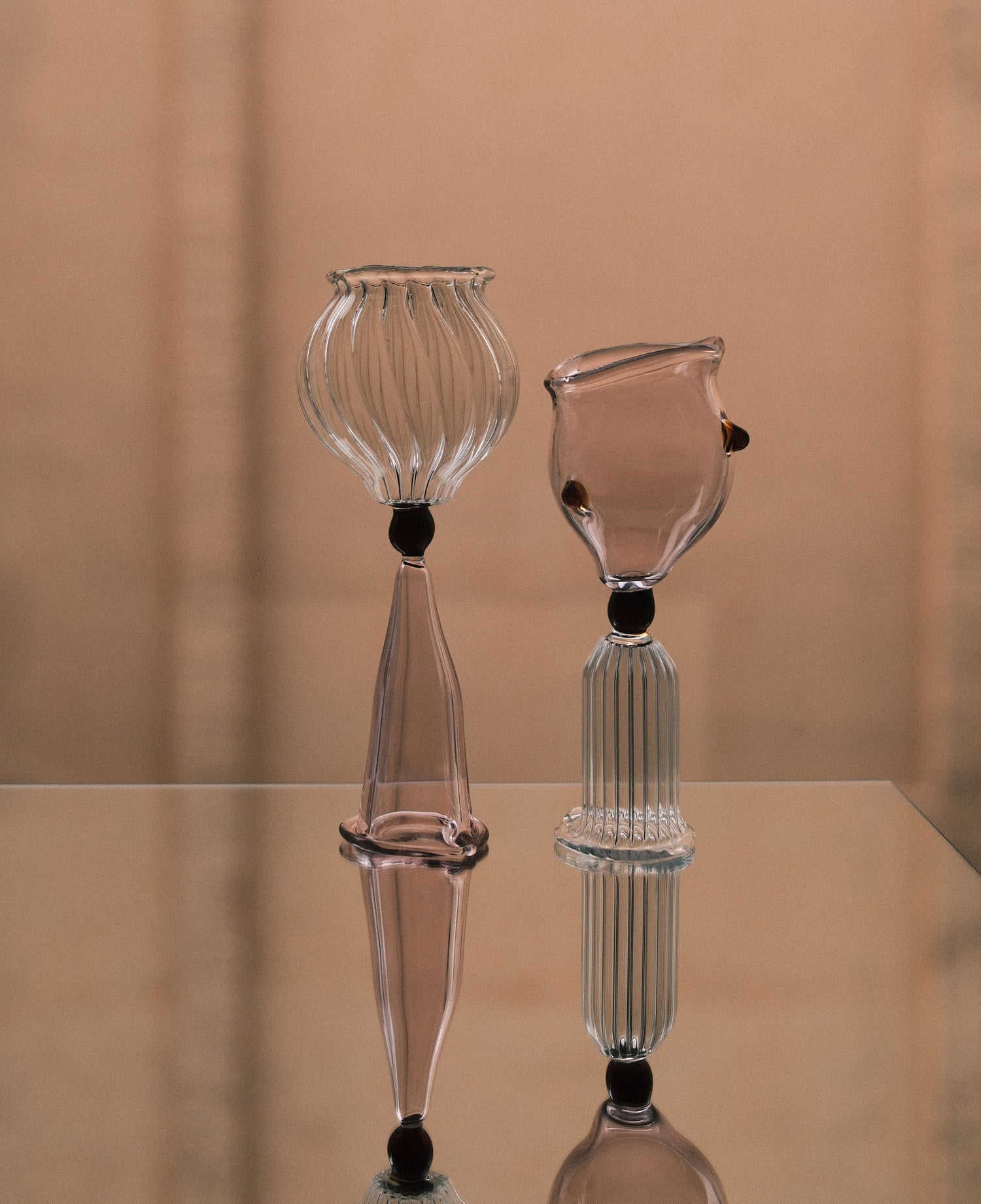 This glassware collection, imagined by a young female designer, draws inspiration from the grandeur of 10th-century medieval glassware. Produced in the renowned glassmaking region of Bohemia, Czech Republic, they marry traditional craftsmanship with a contemporary aesthetic.