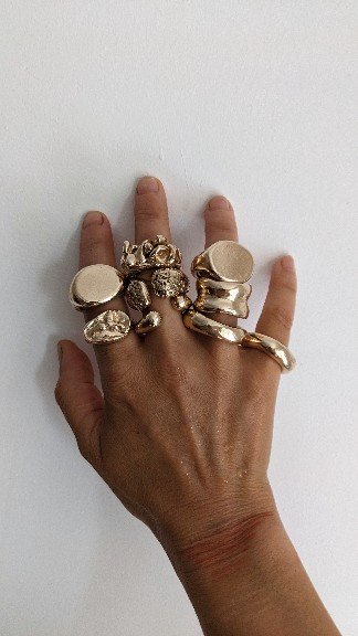 Emily’s creative process is meticulous and methodical. Each piece begins with a lump of bronze metal clay and involves multiple stages: drying, sanding, firing, and tumbling. Her work is characterized by careful experimentation and respect for the material's inherent qualities. Inspiration comes from her interactions with nature, societal influences, and historical design.