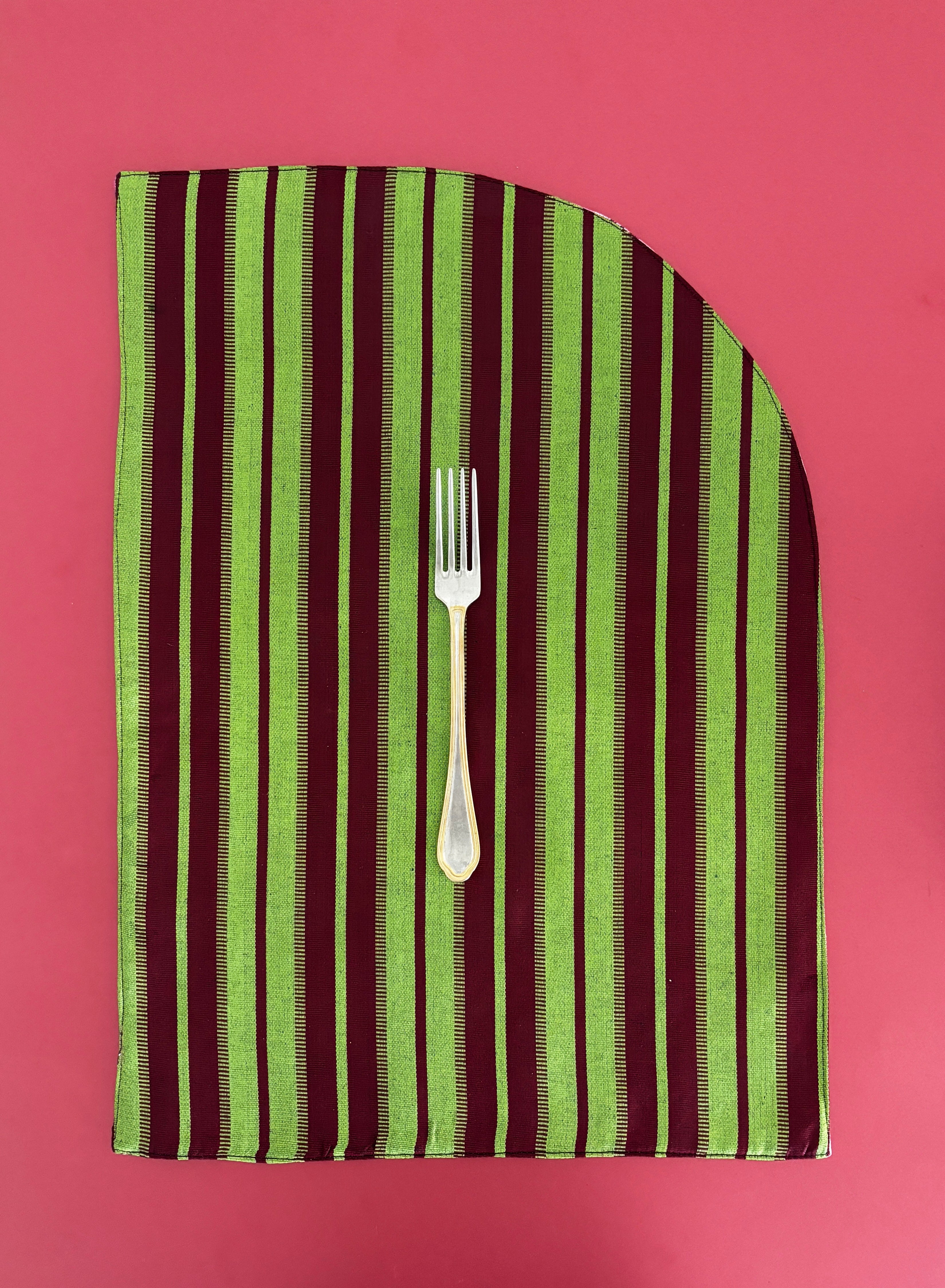 Made from Kutnu, a semi-silk textile woven only in Gaziantep, these placemats showcase the fabric’s heritage and subtle sheen. The rayon-silk warp and cotton weft create a durable, luminous surface. Each piece is double-sided with contrasting stripes for two looks in one.