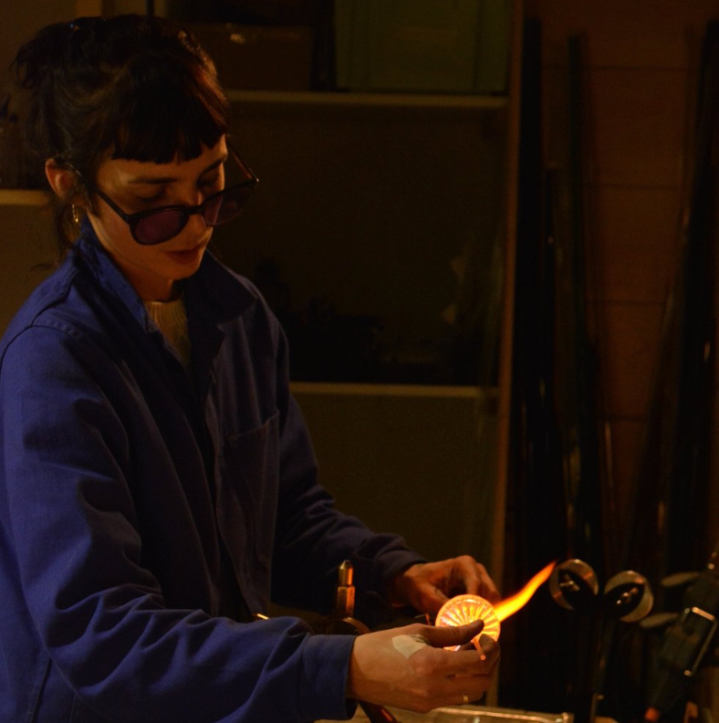 Her studio, Ulysse Sauvage, operates between Paris and Bordeaux, with production taking place in France. With formal education from the Sorbonne and the Beaux-Arts in Brussels, she transitioned from art to glassblowing. She earned a CAP in scientific glassblowing and honed her craft in a specialized company. Today, she applies her technical expertise and artistic vision to create functional yet artistic glass objects.